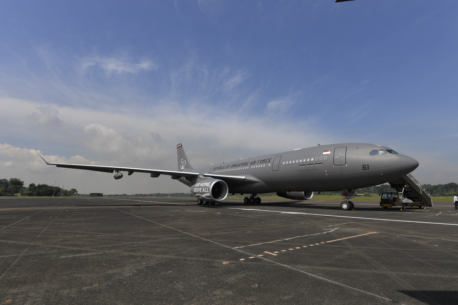 Selepas perbarisan, Encik Lee melawat pesawat pengangkutan Tangki Pelbagai Peranan Airbus A330 yang terbaru, yang pertama kali dipamerkan dan telah diberi taklimat mengenai kemampuannya.