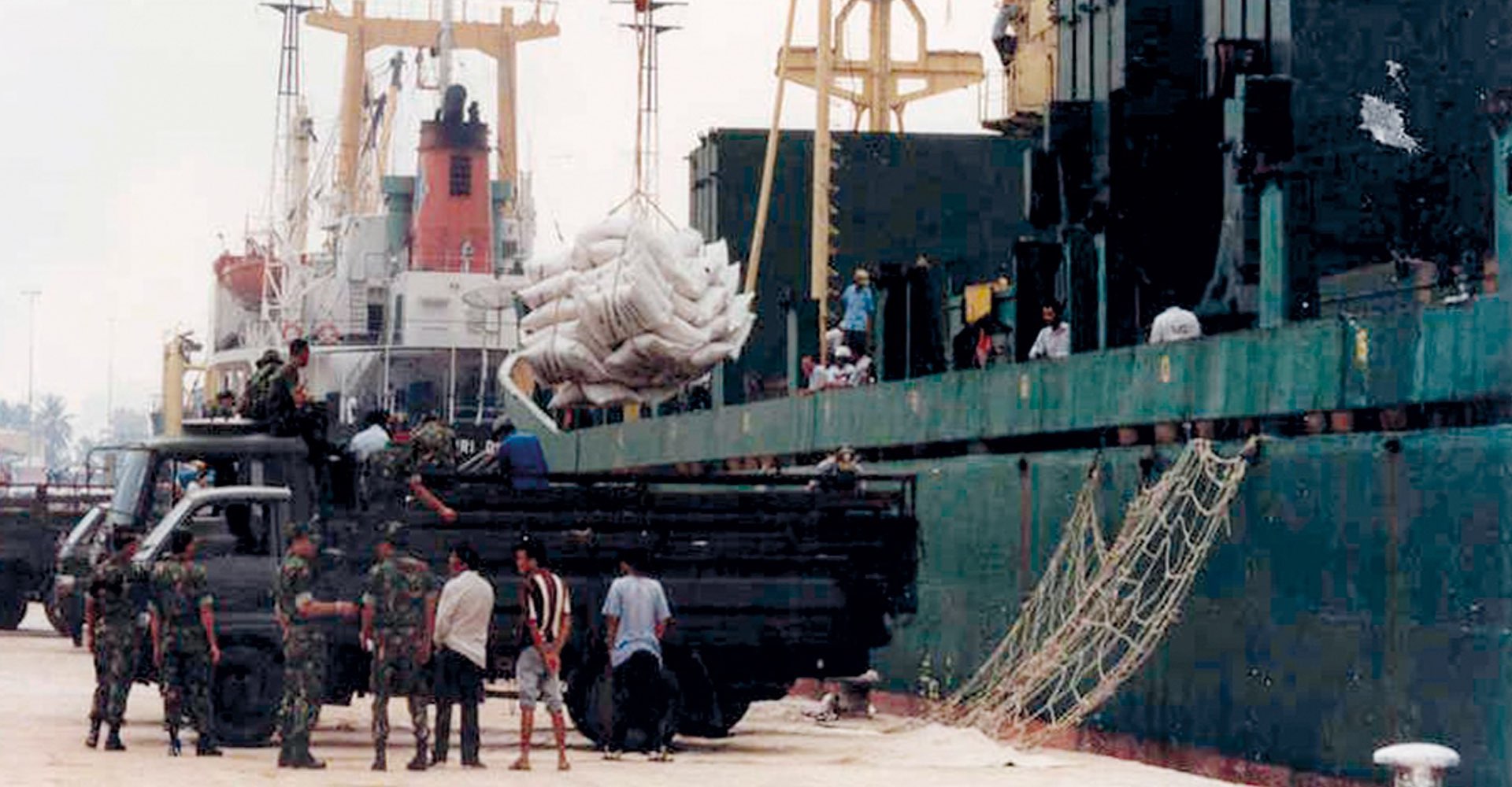 The supplies were shipped from Thailand to Indonesia via then-Merchant Training Ship MV JAYA VENUS, which was fully operated by Operationally Ready National Servicemen who were called back on a voluntary basis. About 280 military personnel were involved.