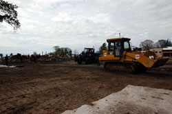 Engineering efforts continue on land as the Chinook landing site near the beach is being prepared (left).