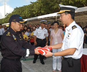 Chief of Navy Rear-Admiral (RADM) Chew Men Leong officiated at the send-off ceremony for the LST and its crew of 180 personnel. He presented each of them with the state insignia and a letter of encouragement.