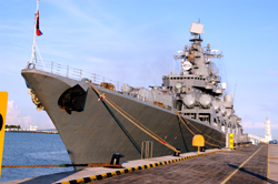 Varyag is armed with several weapon systems like the Cruise missile system, which can launch missiles with a range of 550km, an anti-aircraft missile system and a range of 30mm to 130mm artillery weapons. It also has a K-27 helicopter on board.