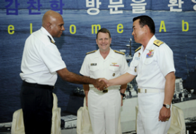 Officiating at the ceremony was Vice-Admiral (VADM) William E. Gortney, Commander Combined Maritime Forces. Commending Singapore on its three-month leadership of CTF 151, he said: "Whether coordinating the efforts of Coalition vessels, deploying boarding teams to suspicious dhows, or educating commercial mariners on best management practices, Rear-Admiral Miranda's team has consistently been the driving force behind these measures of effectiveness and has raised the bar for future task force commanders."