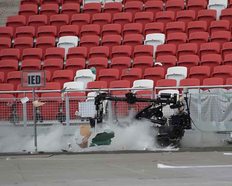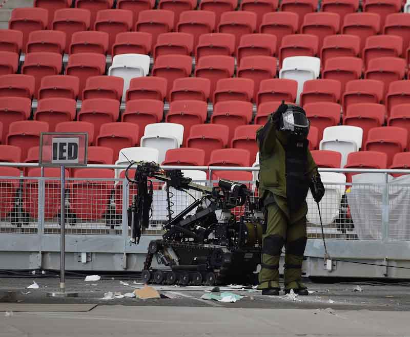 A suspicious package was spotted at a far corner of the stadium. It was yet another explosive device, and an SAF Explosive Ordnance Disposal (EOD) team was called in to deal with the sinister package as the public was being evacuated.