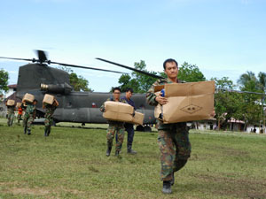 Since operations began on 30 Mar, the Chinooks have airlifted about 30 tonnes of relief supplies from Medan to Nias and a neighbouring island, Simeulue.