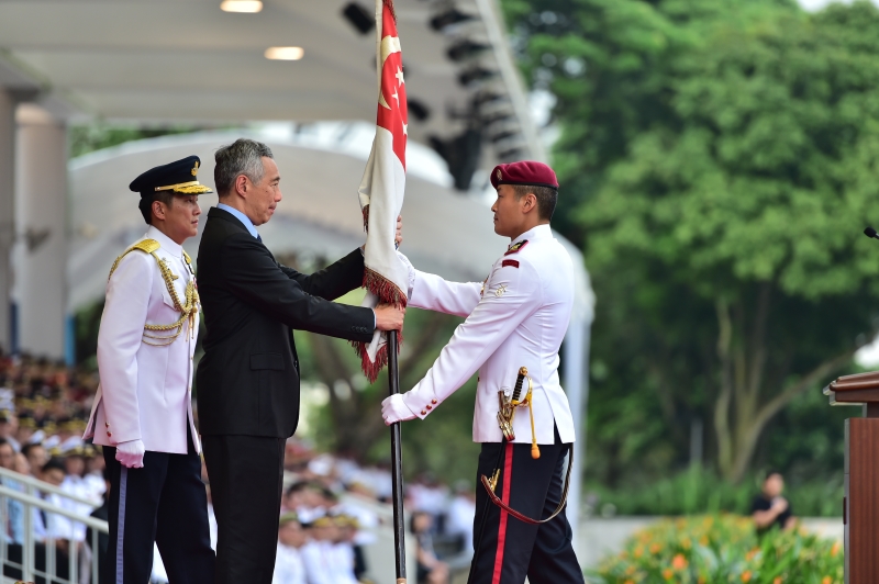Mr Lee presented the State Colours to this year's Best Combat Unit, 1st Commando Battalion (1 Cdo Bn), which had won the award for the 12th consecutive time.