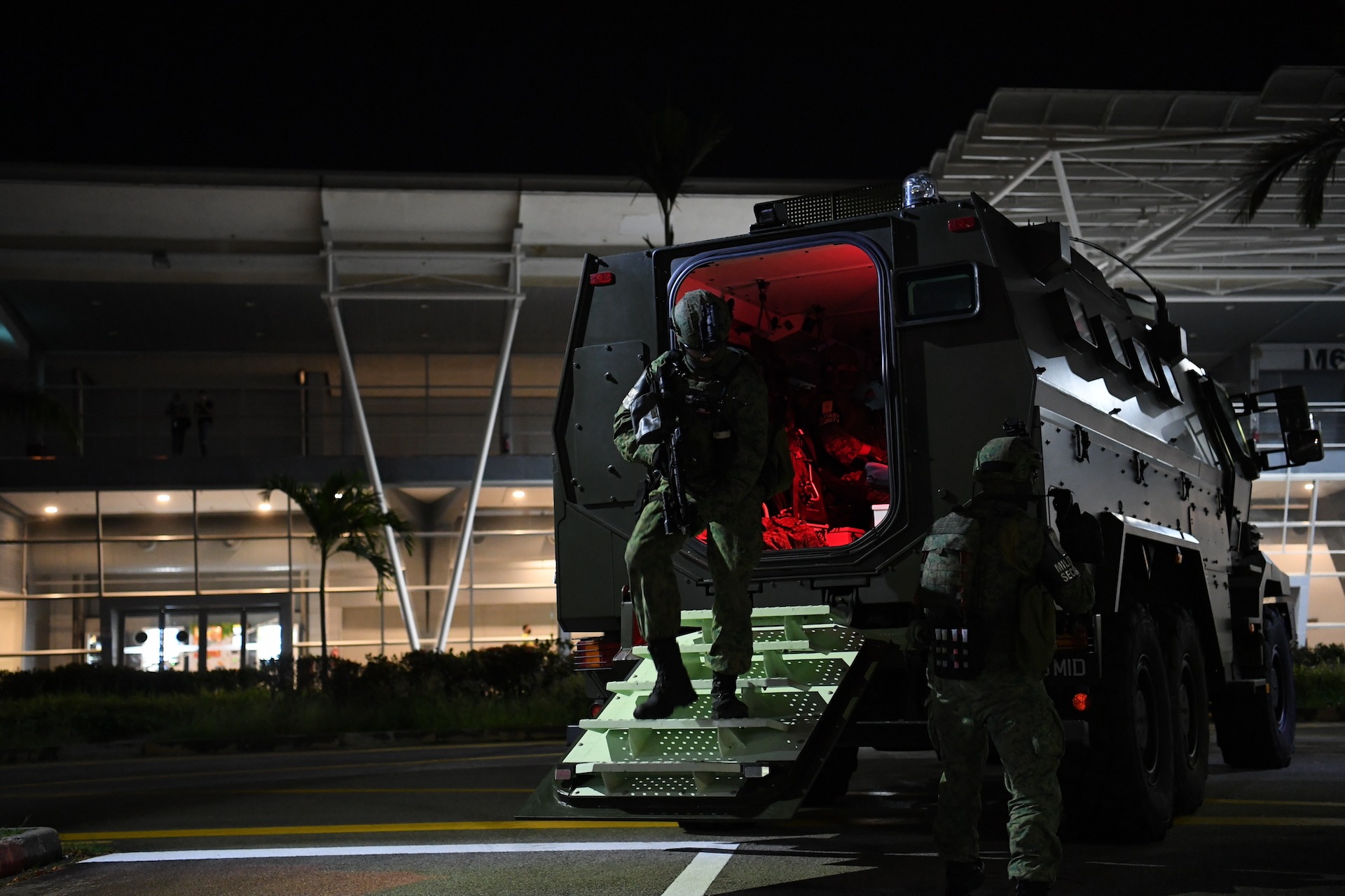 Ini merupakan senario yang dilaksanakan semasa latihan cegah keganasan oleh Angkatan Bersenjata Singapura (SAF), Angkatan Polis Singapura (SPF) dan Angkatan Pertahanan Awam Singapura (SCDF).