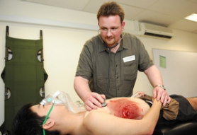 ATLS workshop participant Dr Crawford applying the skills taught during the ATLS workshop in treating a patient who was unfortunately quotshotquot in the chest.