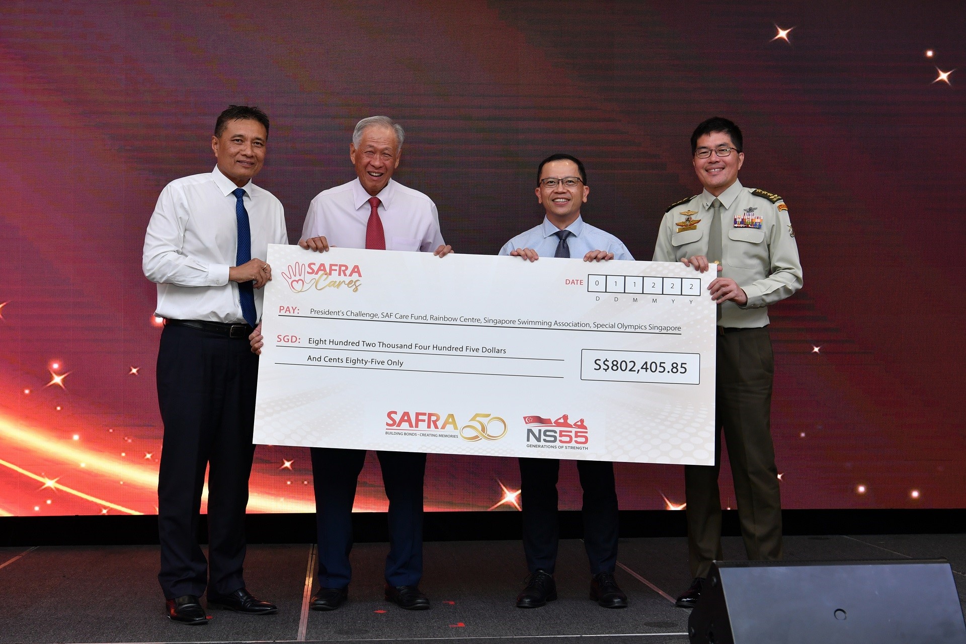 Setakat ini, lebih $800,000 telah dikumpul untuk benefisiari daripada Cabaran Presiden, SAF Care Fund, Rainbow Center dan lain-lain.