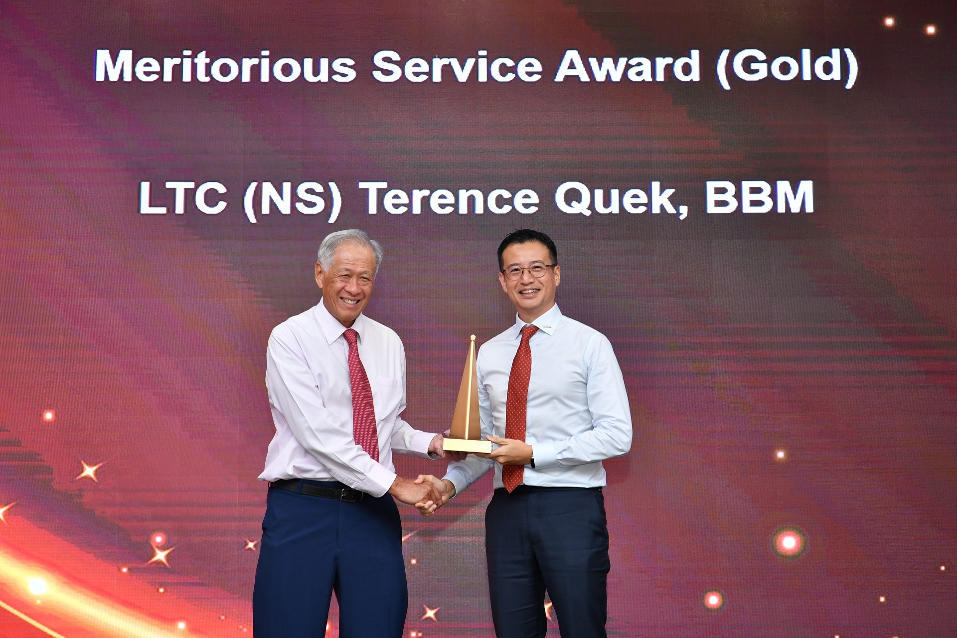 Penerima Anugerah Jasa Gemilang (Emas) Leftenan Kolonel (LTC) (NS) Terence Quek telah menjadi sukarelawan SAFRA sejak 2009. Beliau kini berkhidmat sebagai Pengerusi Jawatankuasa Eksekutif SAFRA Toa Payoh.