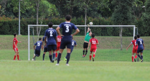 SAFSA got off to a promising start: The players, all full-time National Servicemen, were quick to take possession of the ball. There were several memorable moments in the first half of the game, such as when Private (PTE) Randy Tay, the SAFSA team's forward, leapt into the air to deflect his opponent's tackle, earning an admiring gasp from spectators.