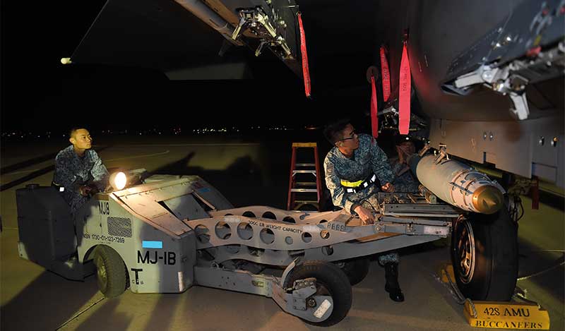 For cooperative lasing to take place, the various aircraft use advanced precision munitions such as the Joint Direct Attack Munitions (JDAMs), Laser JDAMs, Hellfire missiles, and GBU-10 and GBU-12 Laser Guided Bombs.