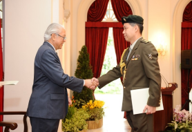 It was double the joy for Captain (CPT) Chee Hong Yi, a Staff Officer from HQ Armour, and Assistant Superintendent (ASP) Foo Jit Choon, an Investigator from the Criminal Investigation Department (CID), as the husband and wife were both appointed as Honorary Aides-De-Camp (ADCs) to the President, from 1 Jun.