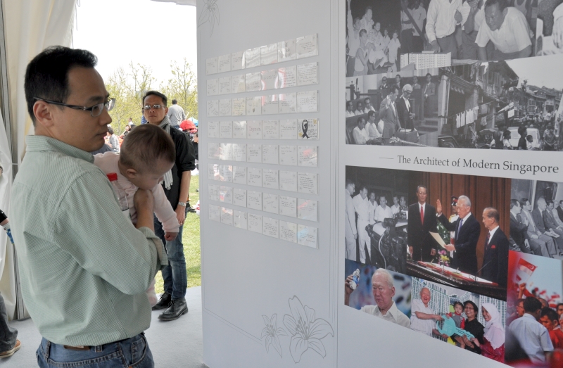 Singaporeans penned tribute messages to Mr Lee in an exhibition tent which featured photo montages of his life and contributions to Singapore.