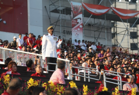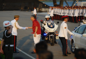 In an NDP first, spectators also had a close-up view of Parade Regimental Sergeant Major (RSM) Master Warrant Officer (MWO) Tamizh Kannan as he gave the commands to form up the parade, not from the platform as with previous NDPs, but from the midst of spectators.