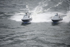 This was followed by a sea salute by the Navy's Rigid Hull Inflatable Boats, which created heart-shaped waves as they manoeuvred around the waters of Marina Bay, followed by an air salute by eight of the Air Force's fighter aircraft.