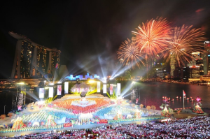 Singapore's 47th birthday celebrations ended on a high as Singaporeans came together to participate in the Pledge Moment and sing a medley of national day songs like Stand Up for Singapore and Count On Me Singapore, waving their torches to the beat of the music.