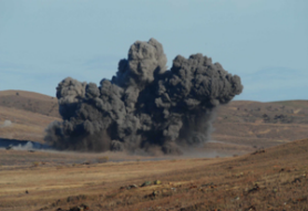 The 2000-pound bomb by the F-16 Fighting Falcon aircraft hitting the target.