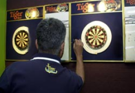 On the second floor of a local pub, the SAF Sports Association (SAFSA) Darts Team begin their weekly practice under the watchful leadership of Mr S Letchumanan.