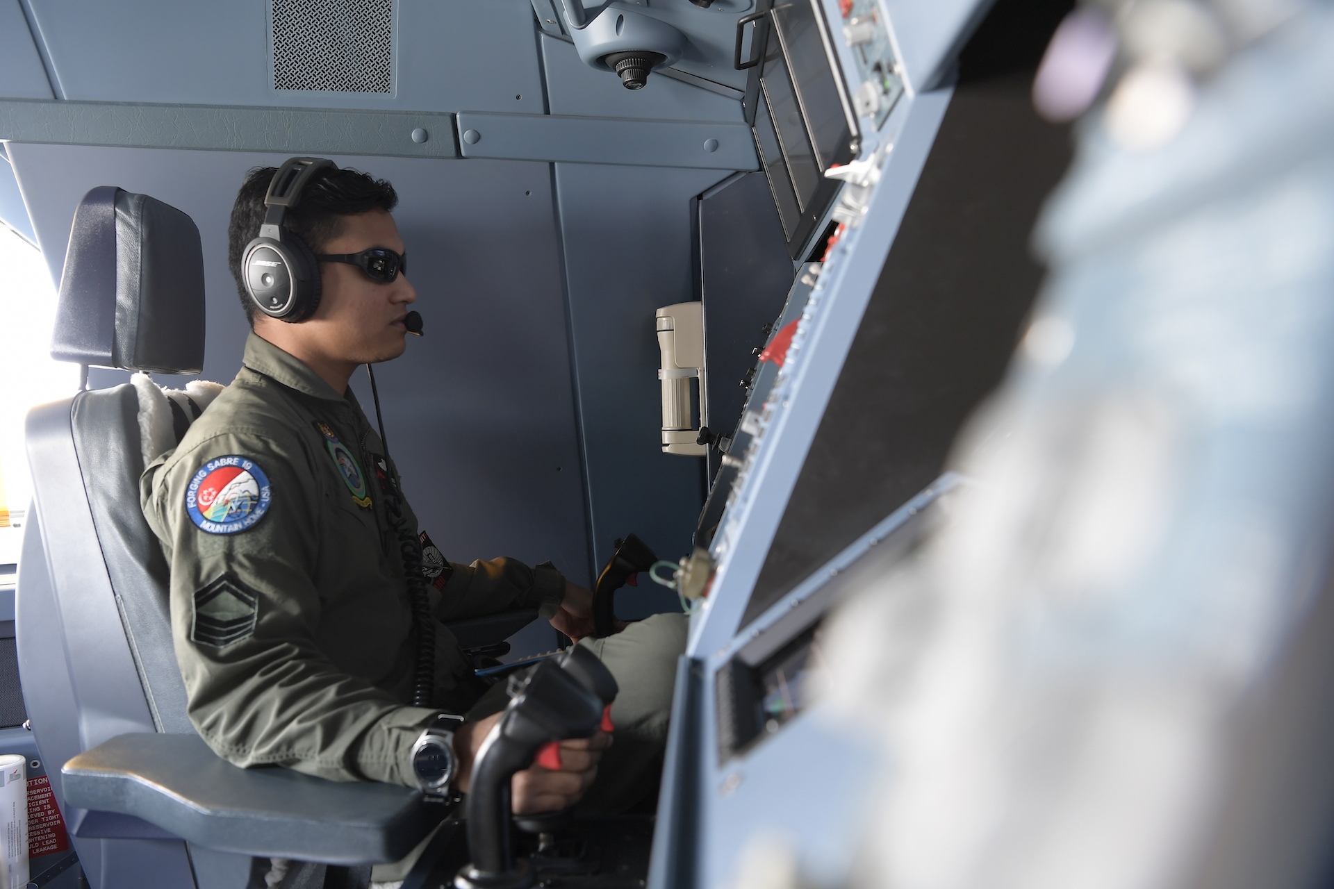 Controlling the system that fuels the F-16 C/D and F-15SG fighter jets in the sky is one of three Air Refuelling Operators (AROs), 1st Sergeant (1SG) Jonathan Augustine.
