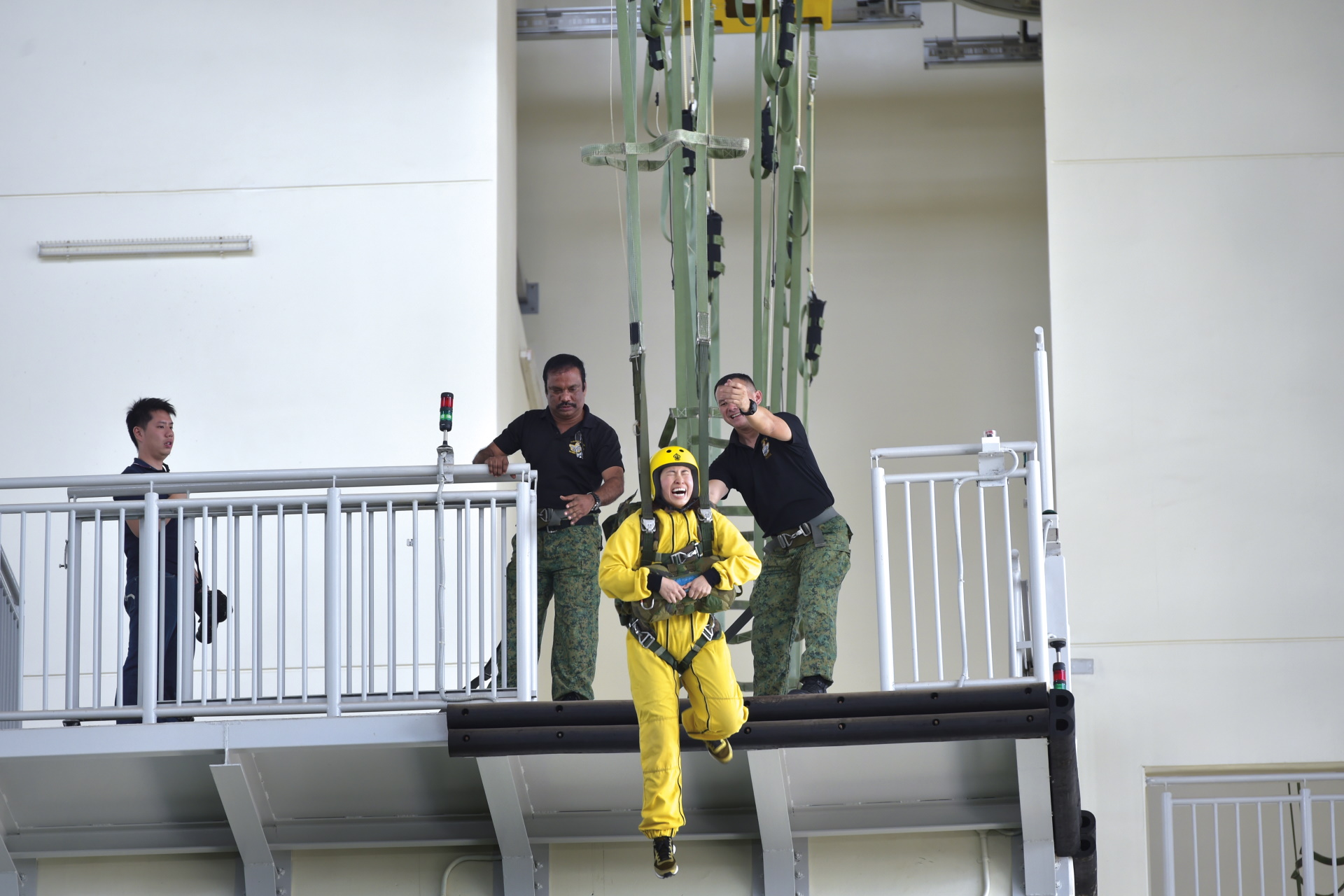 Journalist Jing Ting puts her fear of heights to the test at the Parachute Training Facility.