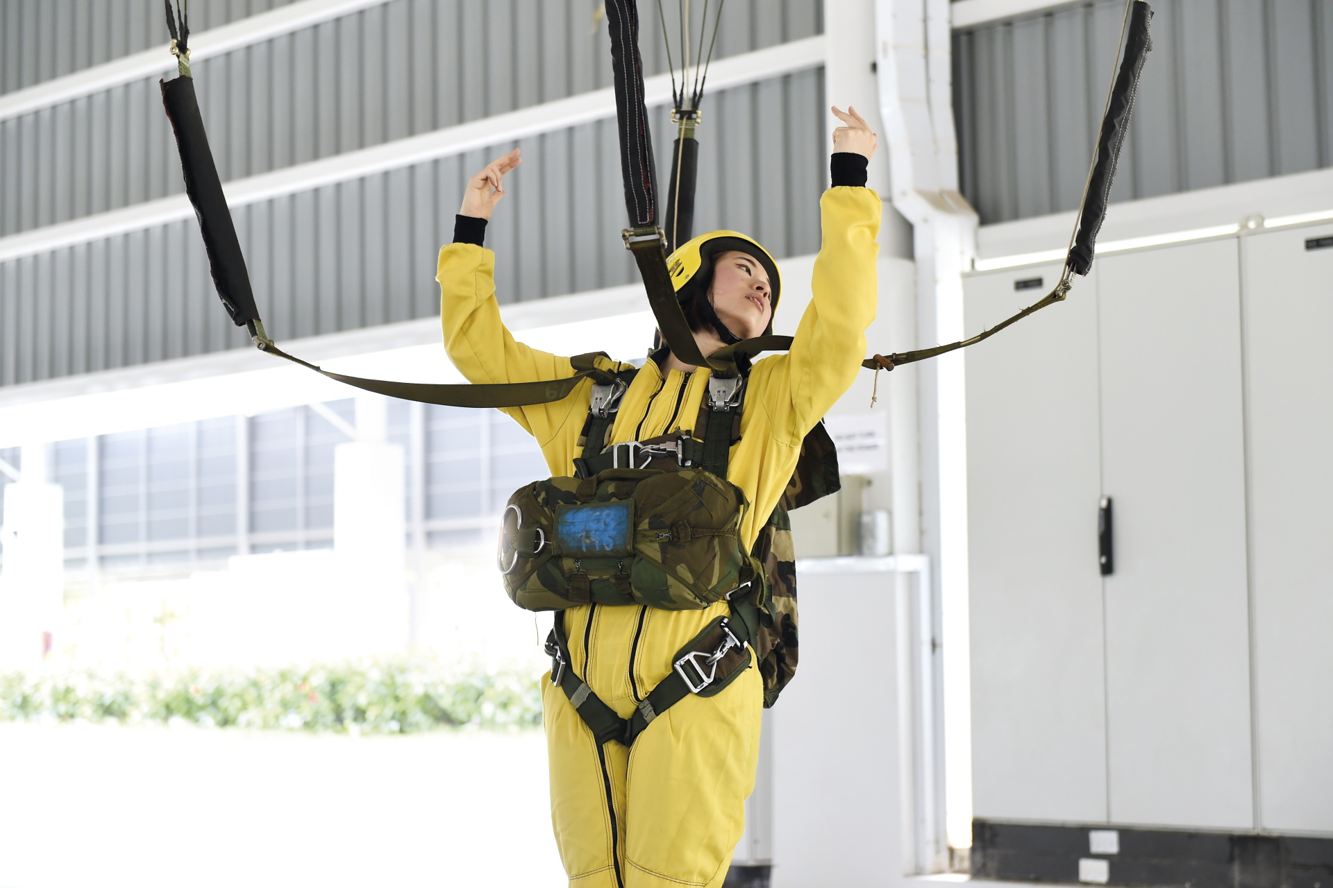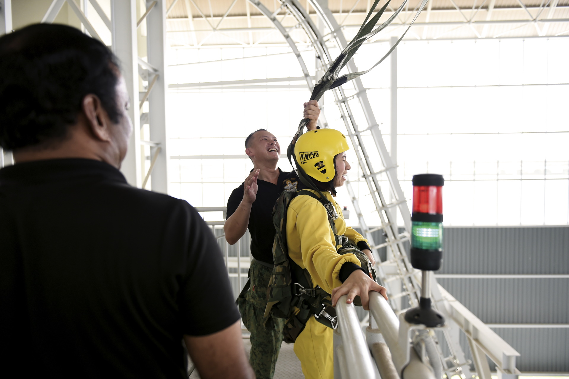 Said 2WO Lim: "Keep your hands on the reserve chute. Move your left foot out onto the edge and lift your right foot to jump off. Once I tap you on the shoulder, jump."