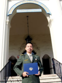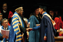 MAJ Ang receiving his post-graduate degree from President Nathan.