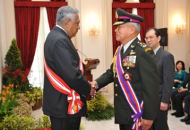 President S R Nathan conferred Singapore's highest military award, the Darjah Utama Bakti Cemerlang (Tentera) [Distinguished Service Order (Military)] on Thailand's former Permanent Secretary for Defence, General (GEN) Winai Phattiyakul, at the Istana on 23 Jun.