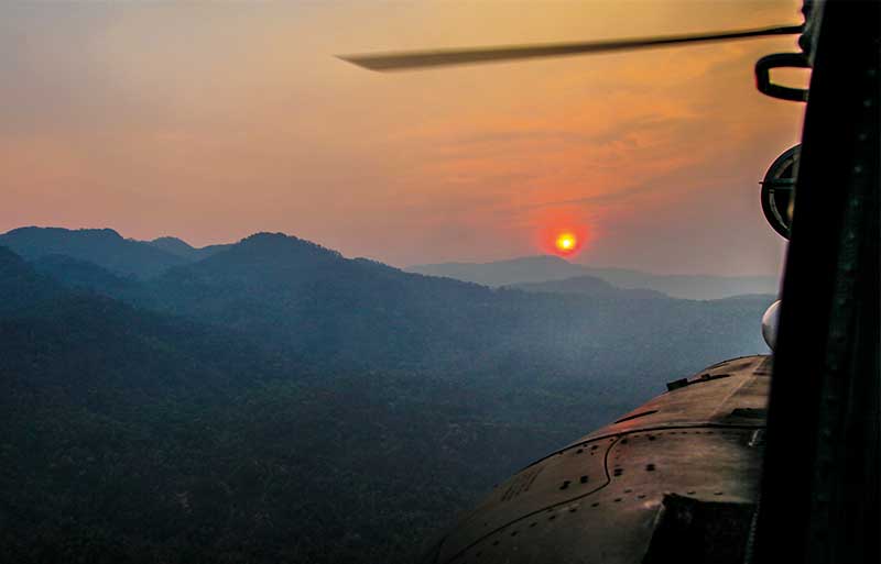 By the third day of operations, the detachment had settled in well. Morning briefings with the Thai forces set their objectives for the day, and following daily reconnaissance flights by the Thai authorities, the detachment would be tasked to douse the larger fires. Each day, they flew out twice to dump water on the flames.
