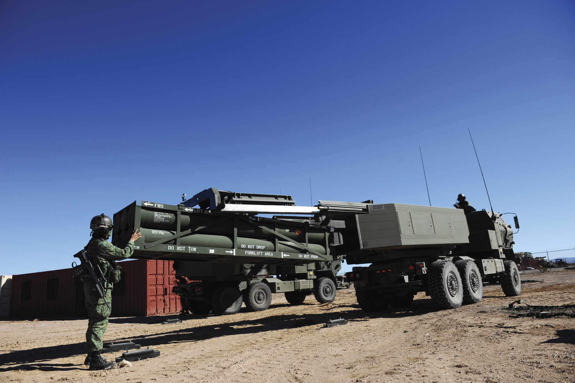 A precision artillery rocket guided by GPS, the GMLRS can hit static targets up to 70km away, minimising collateral damage or loss of civilian lives. Other precision munitions fired at the exercise included the Laser Joint Direct Attack Munition (LJDAM), JDAM, GBU-12 Laser Guided Bomb, and the Hellfire missile.