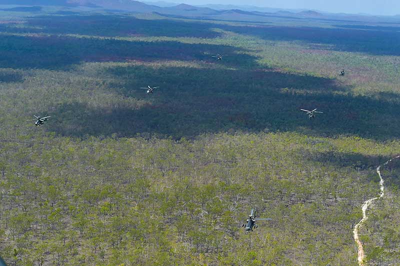 This mission is a means of large-scale troop transportation which can involve up to eight helicopters to transport a maximum of 300 troops in one trip.