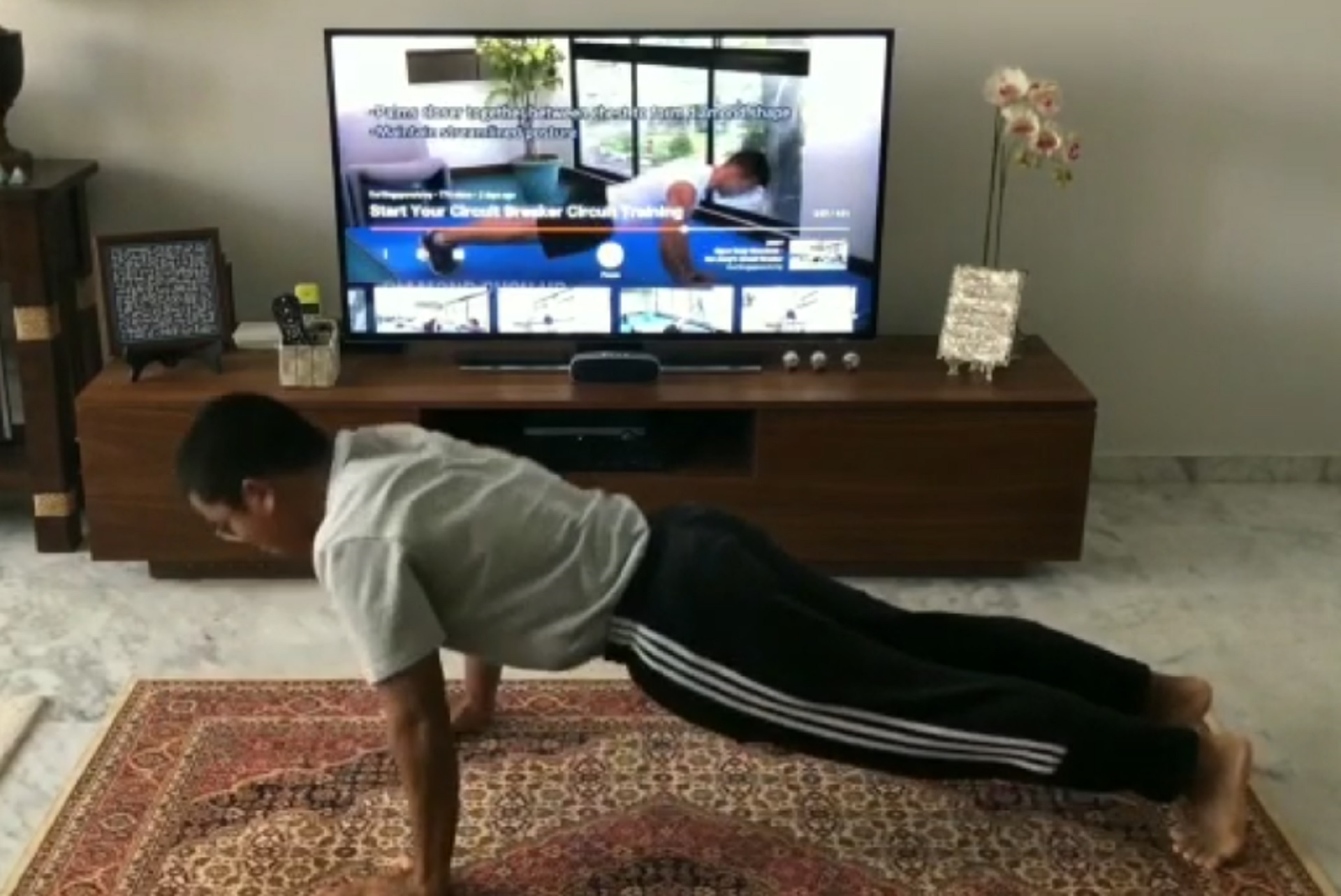REC Ferguson: I do push-ups and sit-ups to train for IPPT (Individual Physical Proficiency Test), and have started doing circuit training. I exercise twice a day, and do 3km runs on alternate days. Sometimes I exercise with my family at home, but usually I do it on my own.