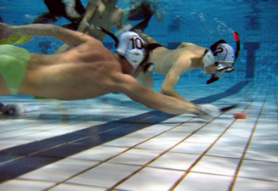 Underwater hockey is a non-contact sport, but players will still experience some bumping around from flailing fins and limbs.