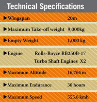 Powered by two Rolls-Royce turbo shaft engines, the Mantis flies at a maximum altitude of 55,000ft (16,764m). Although fighter aircraft can fly at heights of 50,000ft and beyond, the Mantis compensates by being able to cover an area which would require three to four surveillance helicopters to police.