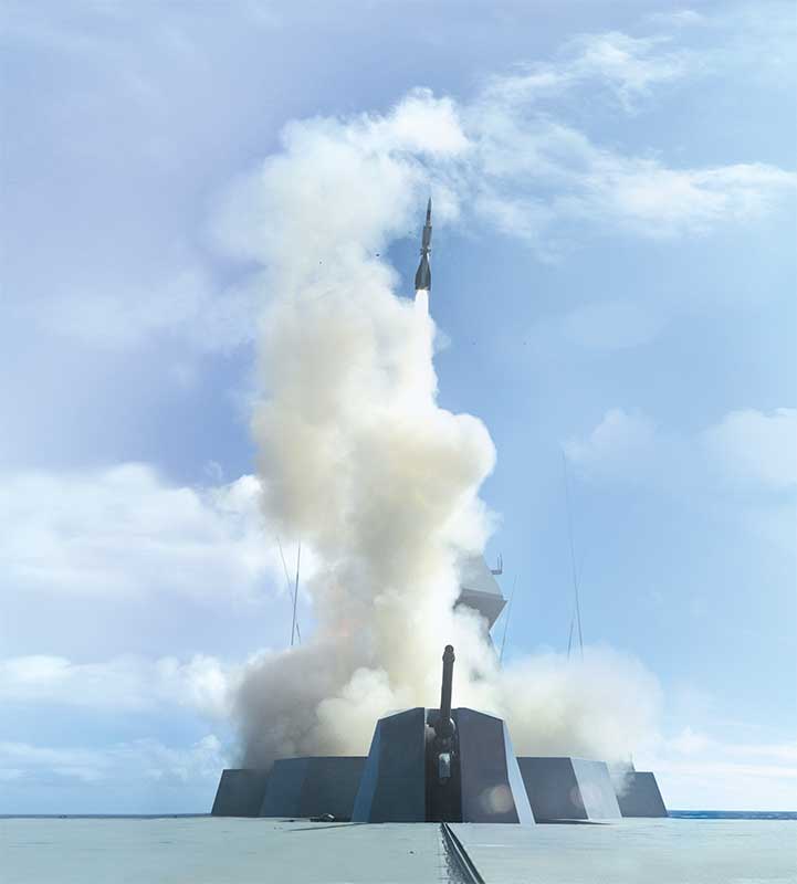 Tracking the trajectory of the incoming missile, the team primed the Aster missile. The order to fire was given and the missile threat, simulated by a drone, was destroyed.