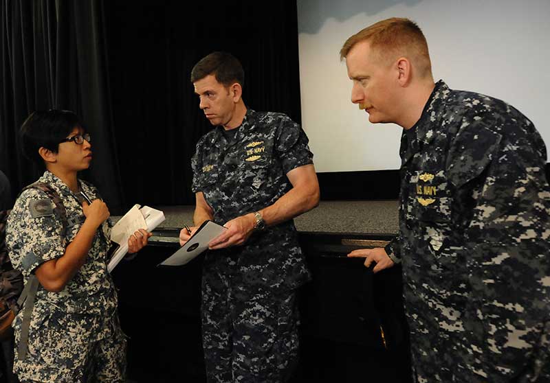 Said MAJ Su with a laugh: "Also, having a glossary of military jargon was definitely useful to decipher the acronyms that our counterparts are fond of using!" With more than 30 ships exercising in the same area, the team had to make sure that each ship fulfilled its training objectives and that there were no scheduling conflicts.