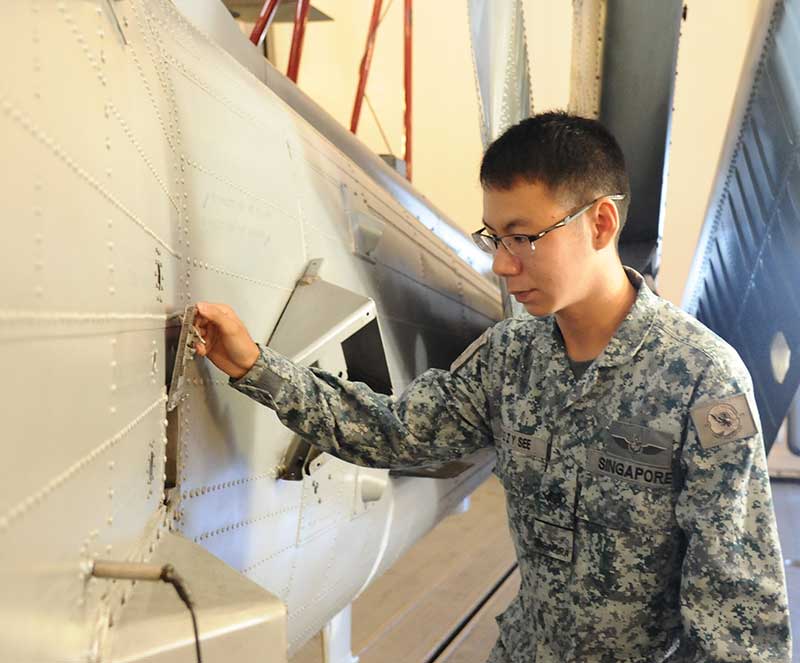 "We carry out servicing and maintenance whenever the aircraft returns. If there are night flights, it could mean working into the early hours of the morning (to make sure that the S-70B naval helicopter is always ready)," said ME1 See Zhi Yong, an Air Force Engineer from the Republic of Singapore Air Force's (RSAF's) 123 Squadron.