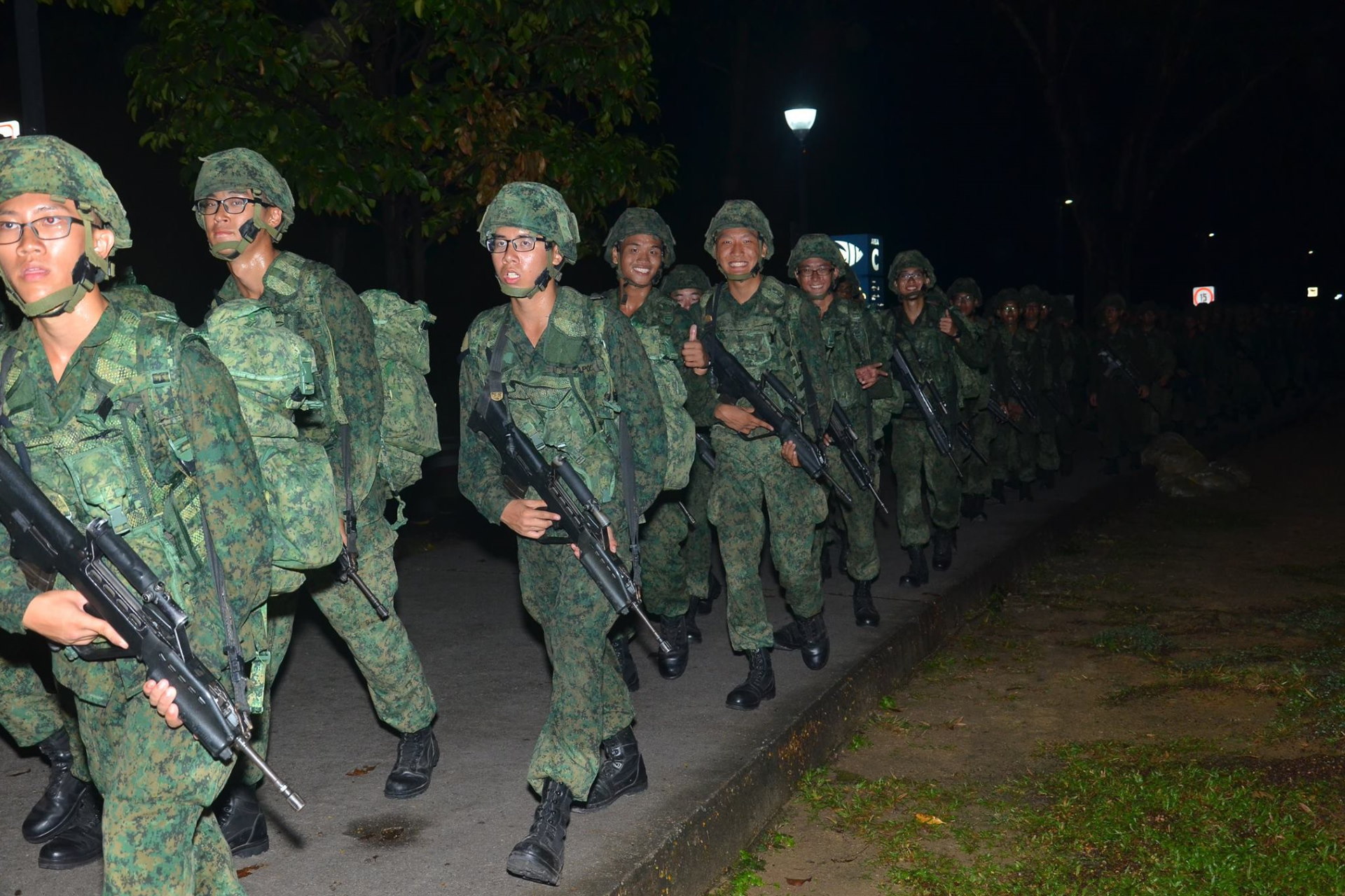Route marches in full combat gear help to build up the recruits’ combat fitness and endurance. The longest march is 24km long, which they have to complete before their graduation parade.