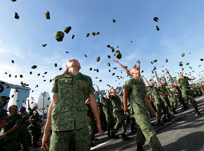 POP loh! Recruits celebrating the end of their BMT at their graduation parade. Their performance will be assessed for deployment to a suitable vocation as they move onward to the next phase of their NS life in operational units or go on to command schools for leadership training.