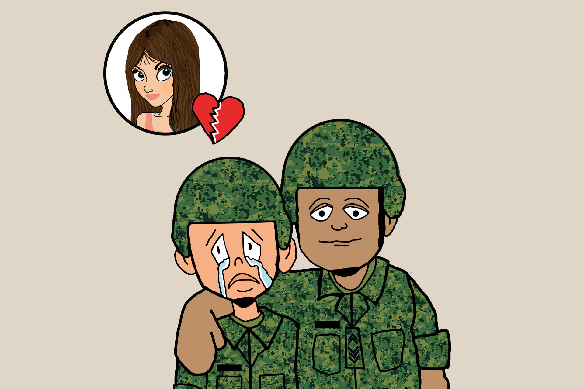He's always there with a listening ear, whether it's in the middle of field camp or late at night in the company line, ever ready with good advice. Like how the grass is not greener here, but the fitness regime is certainly better, so work hard to get your six-pack, and watch the girls flock to you. *bro hug*