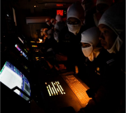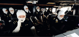 A midshipman (second from right) firing the gun under the watchful eyes of the seasoned RSS Endurance crew in the Combat Information Centre.