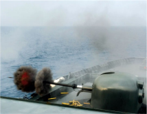 The 76mm round making its way to the target.