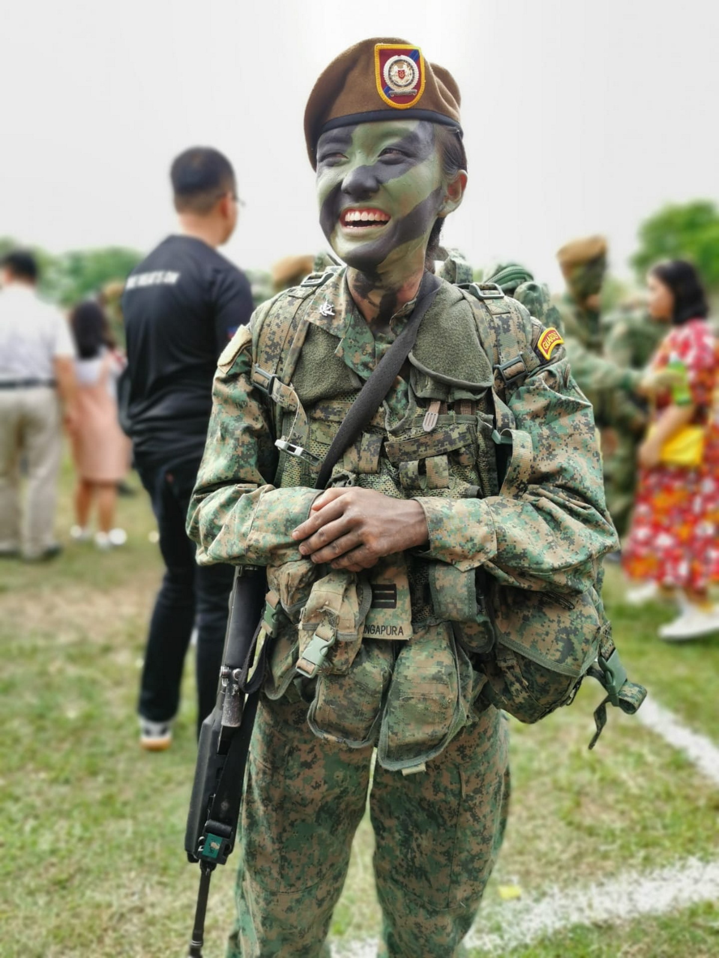 Looking back at the Battle Inoculation course, the toughest part of her BMT, she laughed as she recalled: "It was raining very badly; it was like I was crawling in teh peng (Hokkien for milk tea)! It's just disgusting! Very sad because I was just so wet and tired!"