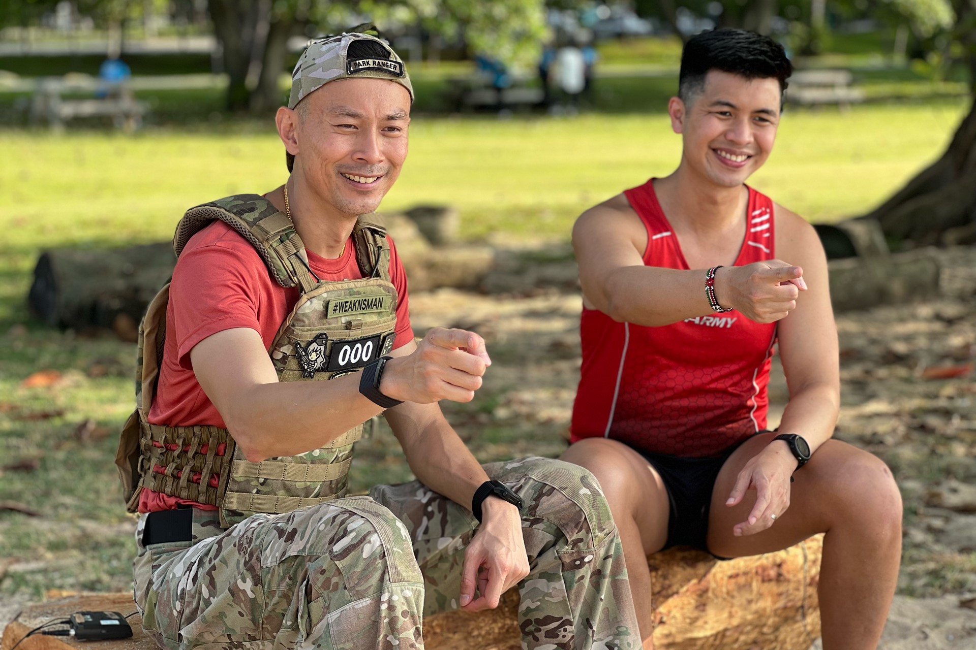 In the second episode of PIONEER's "Never Be A #WeakNSman" series, Major (NS) Steffan Fung (left), Commanding Officer-Designate of 792nd Battalion, Singapore Infantry Regiment, gets Captain (NS) Ashley Liew, Staff Officer, Headquarters 5th Singapore Infantry Brigade, to share his fitness journey.