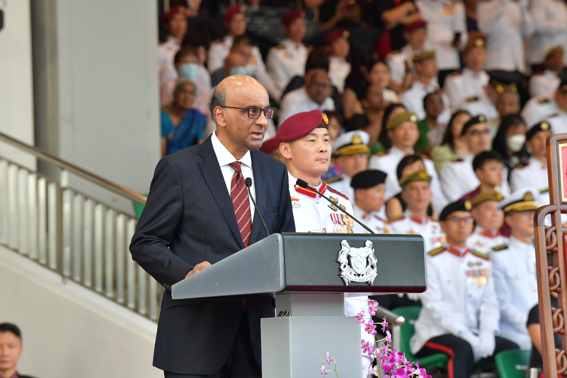 President Tharman Shanmugaratnam reviewed the parade for the first time as head of state.