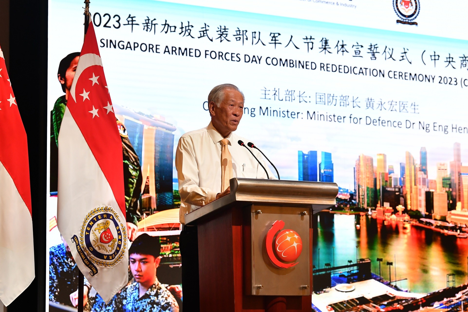 Minister for Defence Dr Ng Eng Hen officiated the ceremony at SCCCI. Speaking to the 51 NSmen from 74 participating companies, he reminded them not to take Singapore's peace and harmony for granted, especially in light of growing challenges and tensions around the world.