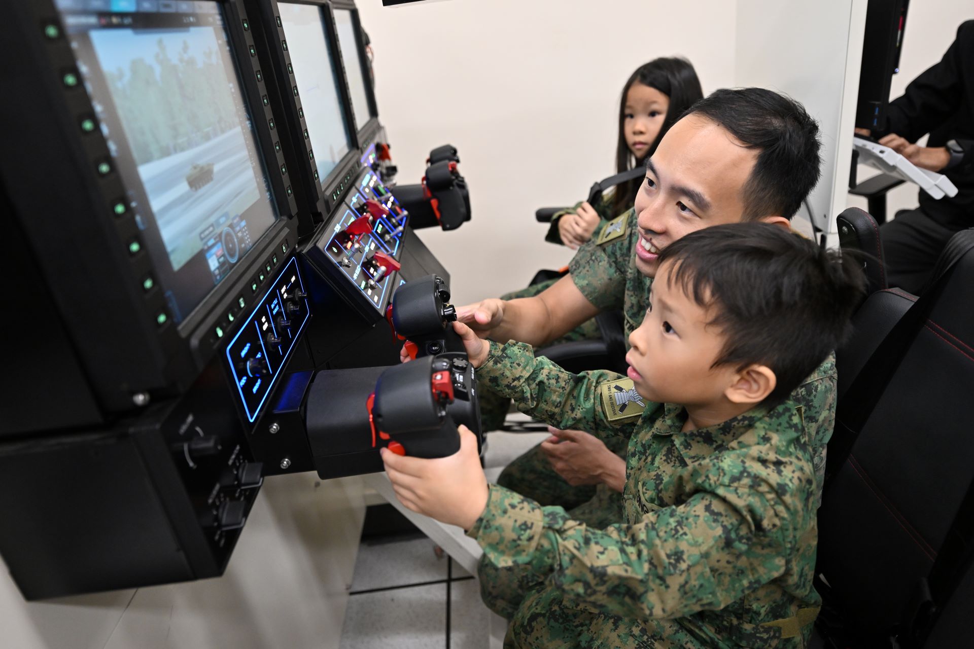 Khas Hari Kanak-Kanak PIONEER tahun ini, Pegawai Tenaga Manusia dari Briged Perisai Singapura Ke-4 (4 SAB), Mejar (MAJ) Tan Zhen Wei Justin, memenuhi hasrat mereka. Dia membawa tiga anaknya - Danielle, 7, Thaddeus, 5, dan Asher, 2 - ke Kem Sungei Gedong untuk mengetahui lebih lanjut mengenai Formasi Perisai.
