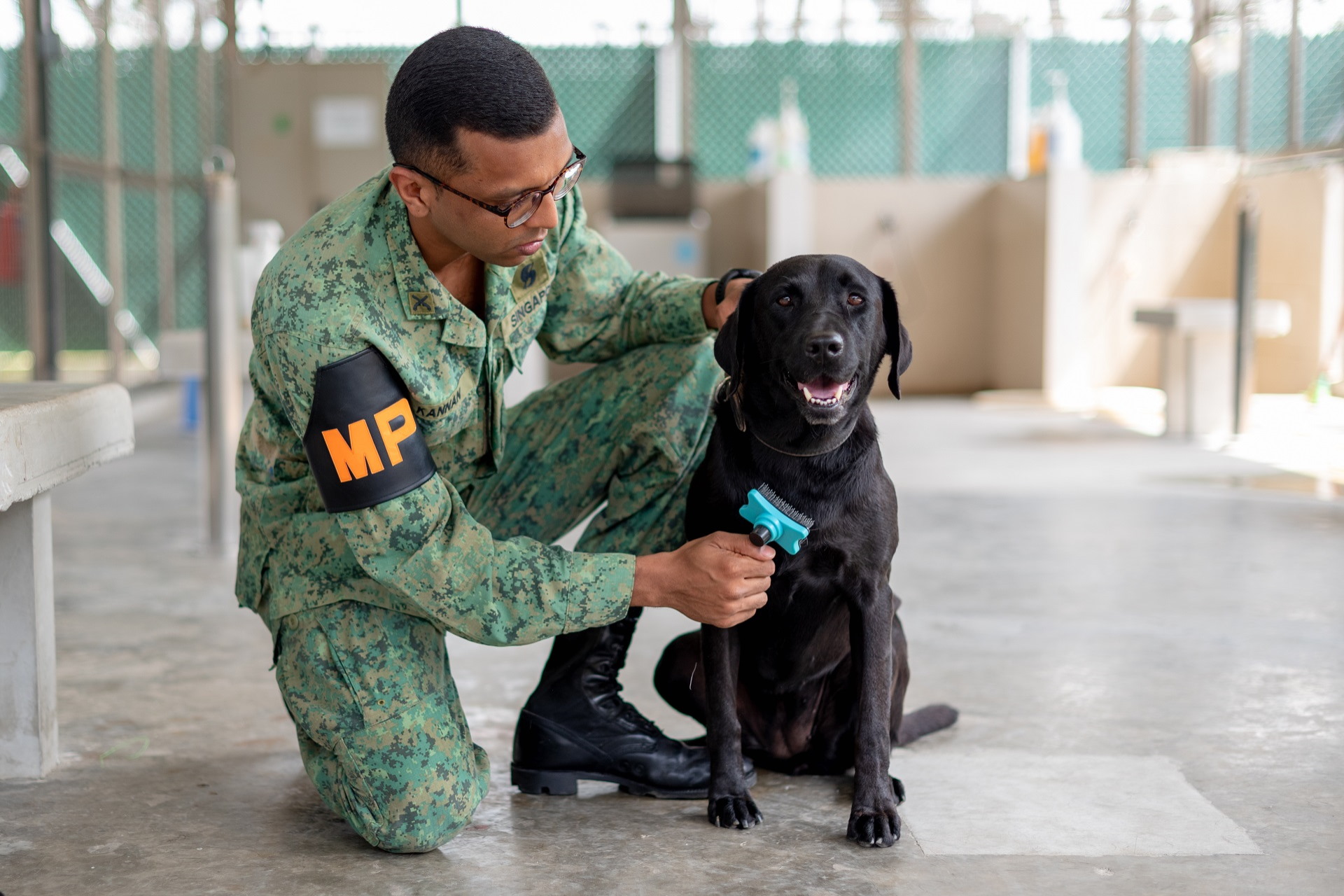 SSG Kannan: There are three important elements to caring for Rogue. First, proper grooming, like clipping her nails and brushing her fur. It's essential not only for her health and well-being, but also to put her in a good mood so that she can concentrate during training.