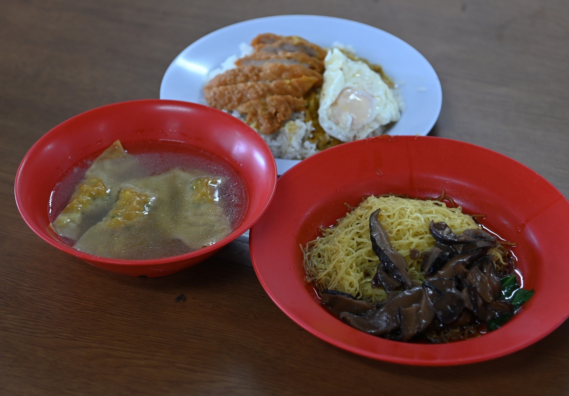 Run by long-time partners Madam Gee Kin Lian, 66, and Mr Yeo Hock Meng, 67, the stall's best-selling dish is their chicken cutlet with curry rice and wonton mee.