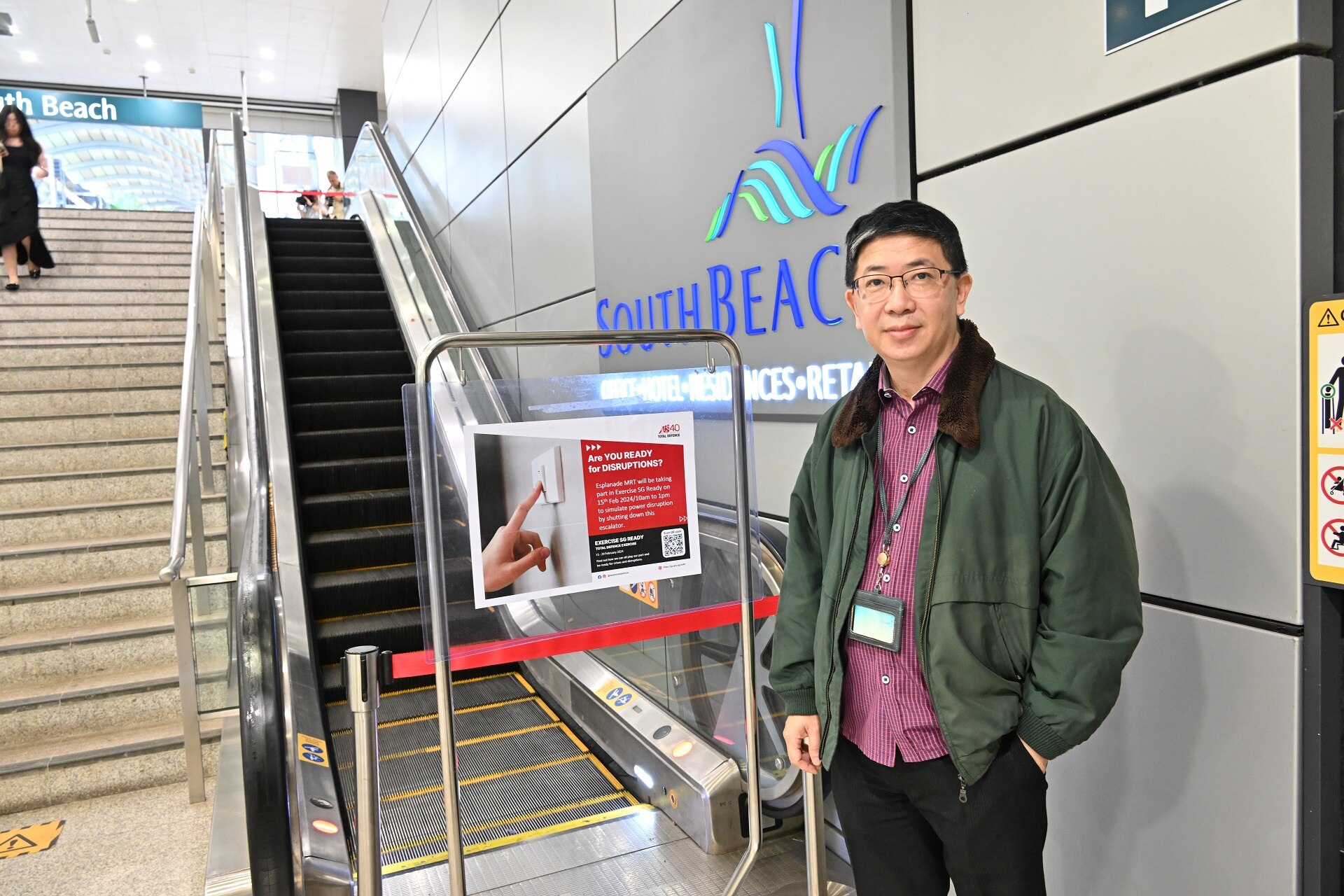 As part of the exercise, Esplanade MRT station turned off one of its downward-riding escalators to simulate a power disruption. The crowds heading to lunch, most of whom were working in the vicinity and were aware of the ongoing Exercise SG Ready, were unfazed and made use of the staircases instead.