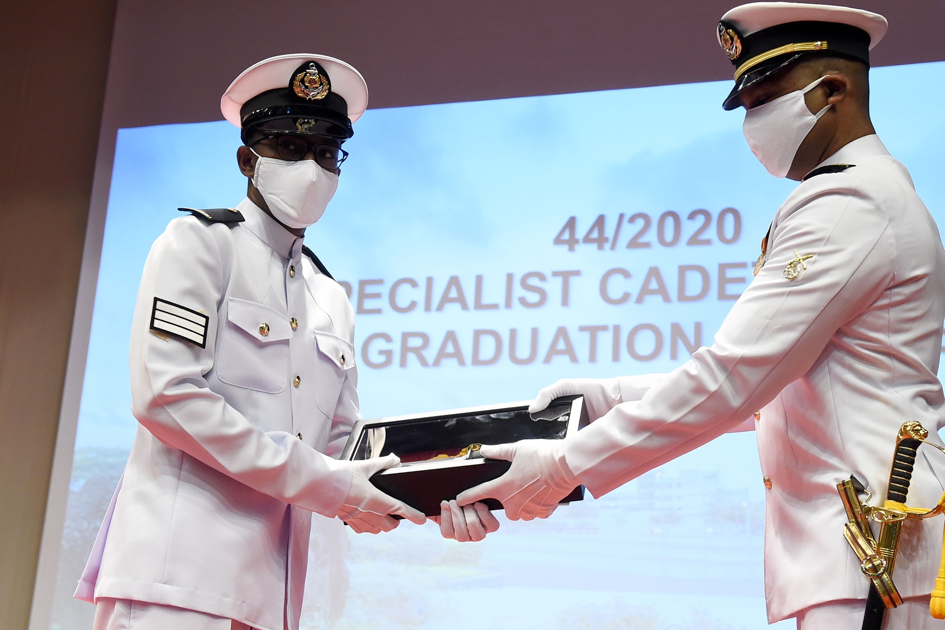 In the light of the COVID-19 situation, the graduation parade was modified to adhere to strict safety rules. The cadets received their bayonets in small-scale indoor parades held by their respective vocational Training Institutes at various locations such as the Nee Soon and Pasir Laba camps, and RSS Singapura - Changi Naval Base.